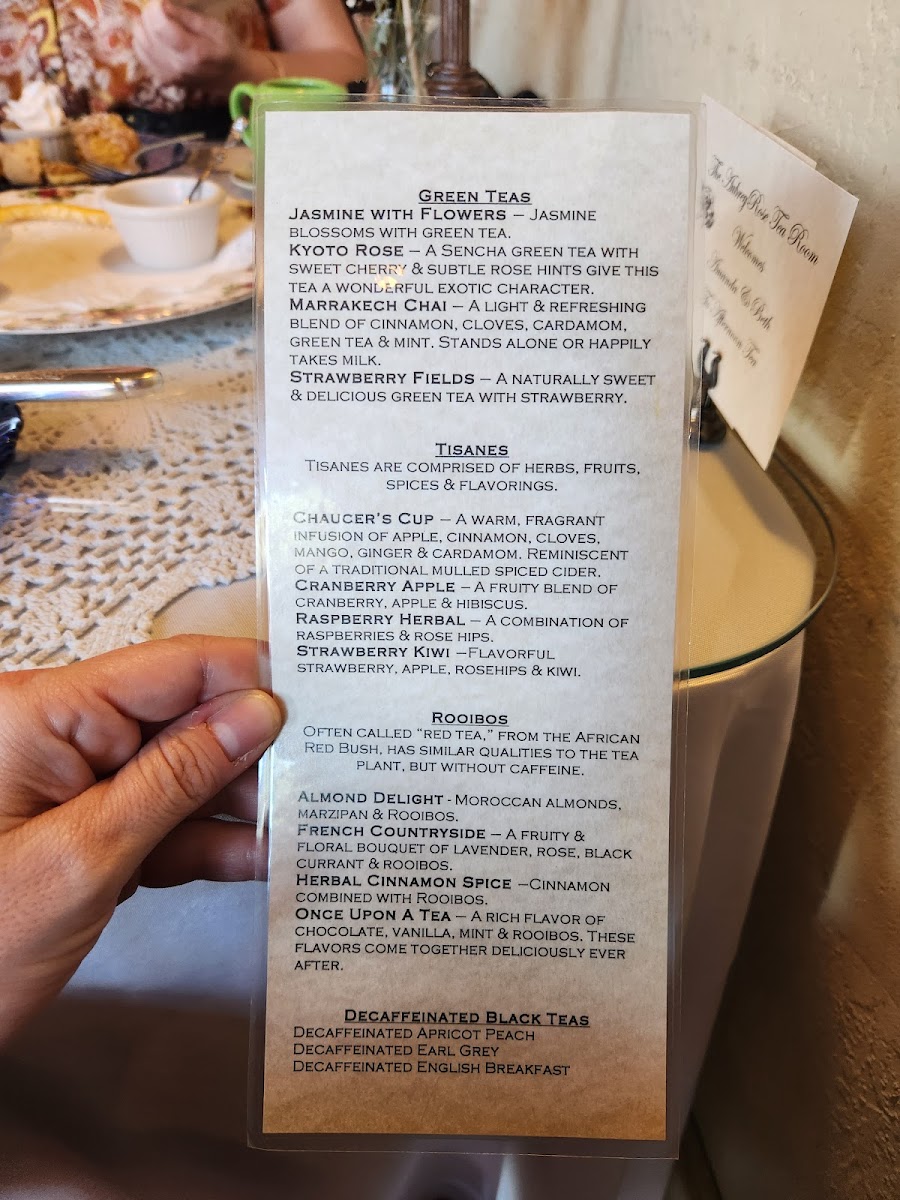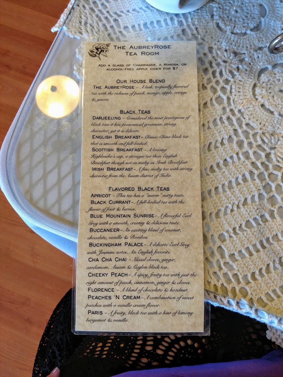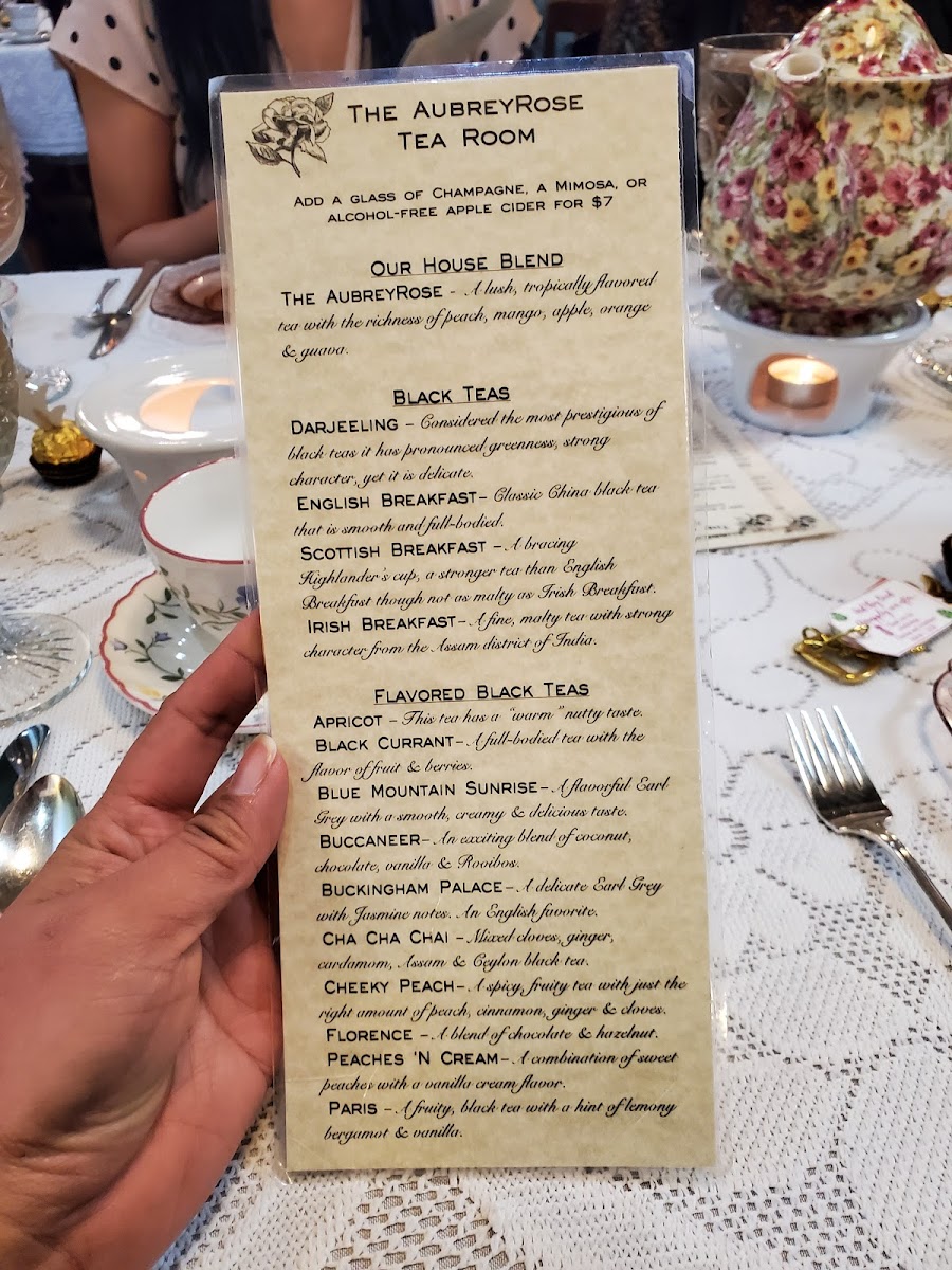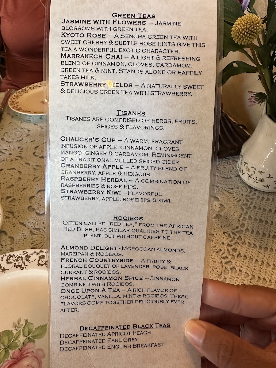 The AubreyRose Tea Room in La Mesa offers a refined yet welcoming afternoon tea experience. Their menu shines with a rich variety of black teas, featuring classics like Darjeeling and English Breakfast alongside vibrant flavored selections such as Buccaneer and Peaches 'N Cream. Decaffeinated options ensure everyone can indulge.